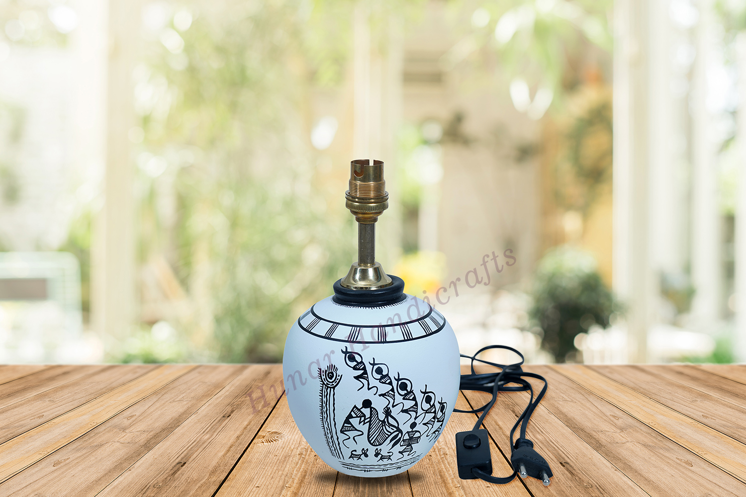 Terracotta Handmade Handpainted Warli Art, Table lamp for bedroom and living area
